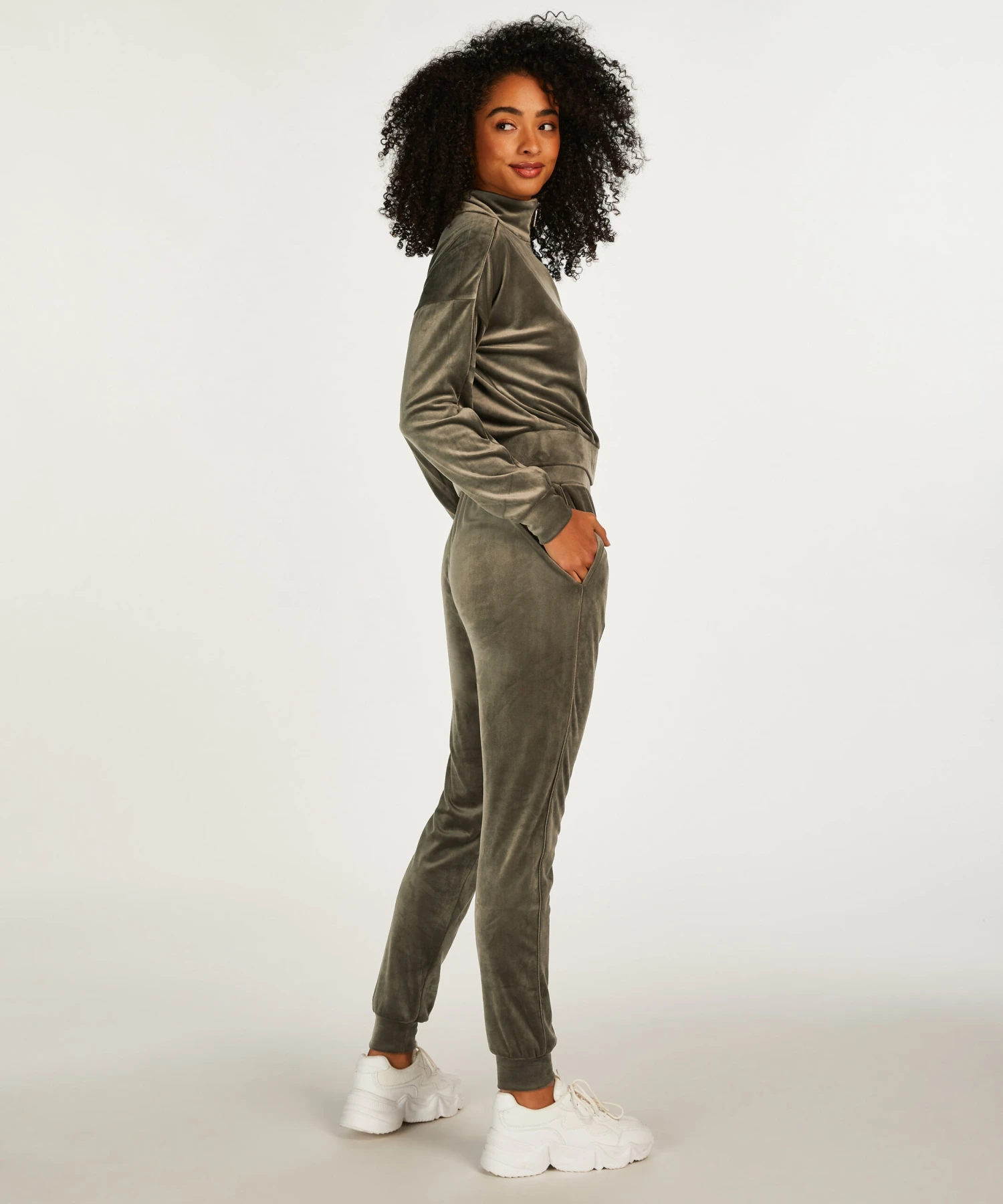 Pantalon de jogging en velours hyper doux et confortable. Le velours est une matière qui est toujours très tendance cette année. À combiner avec les articles assortis pour avoir le total look !