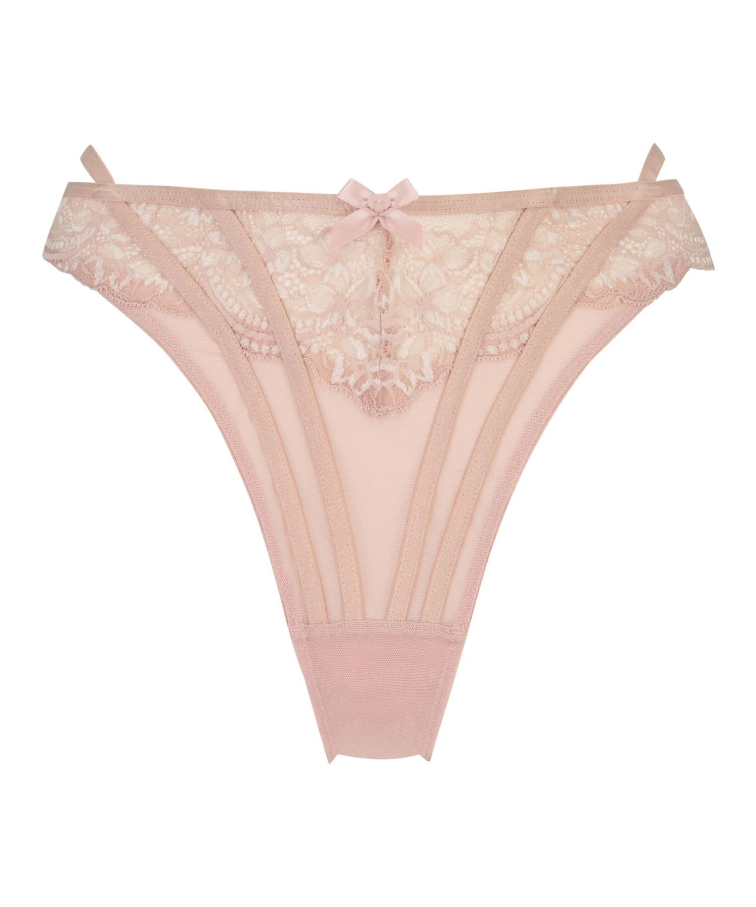 Faites sensation avec ce string ! Il présente des lanières sur le devant et plusieurs détails en dentelle romantique. Ce modèle échancré accentuera la longueur de vos jambes pour un look (encore) plus sexy. Trouvez un soutien-gorge assorti pour compléter l’ensemble !